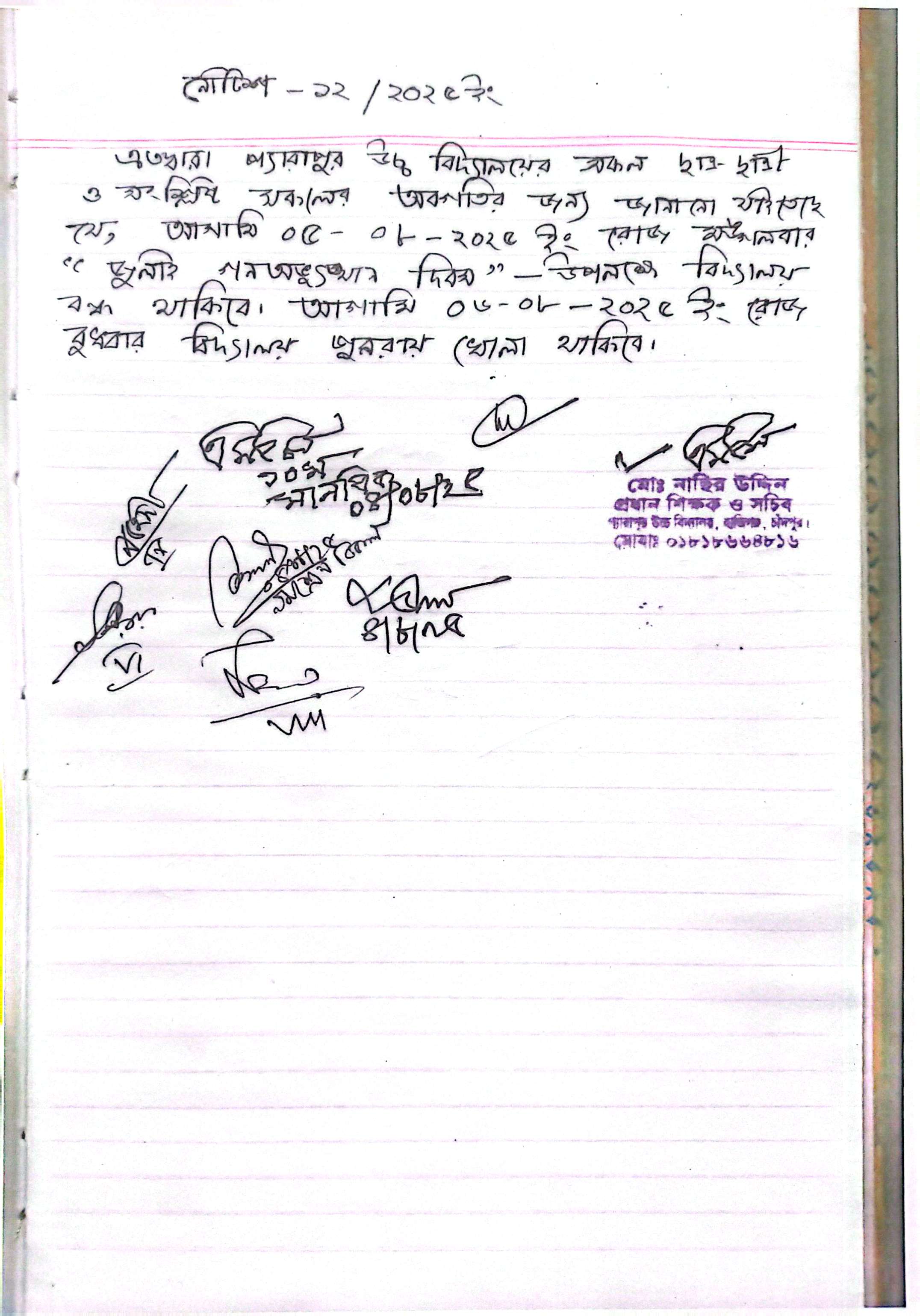 1 | ৫ আগস্ট জুলাই গণঅভ্যুত্থান দিবস উপলক্ষে বিদ্যালয় বন্ধের নোটিশ | General |