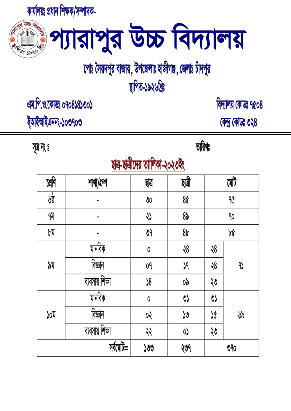 ছাত্র-ছাত্রী তালিকা ২০২৩ ইং