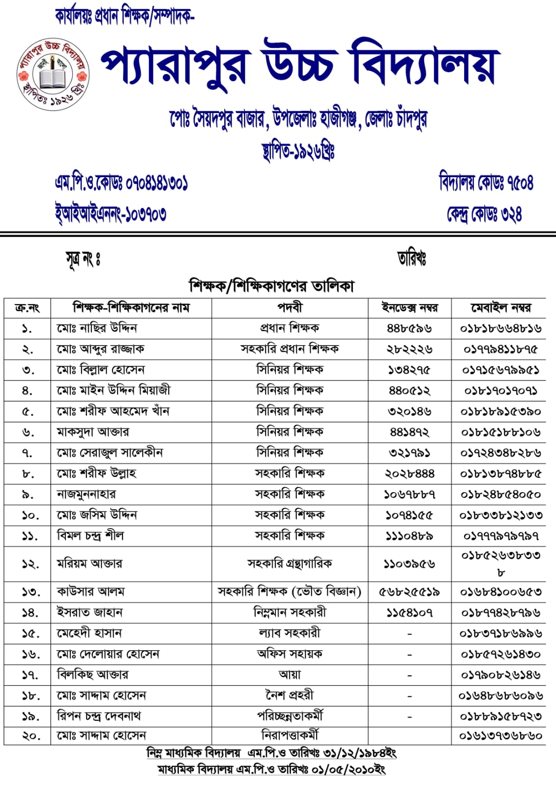 শিক্ষক-শিক্ষিকা গণের তালিকা